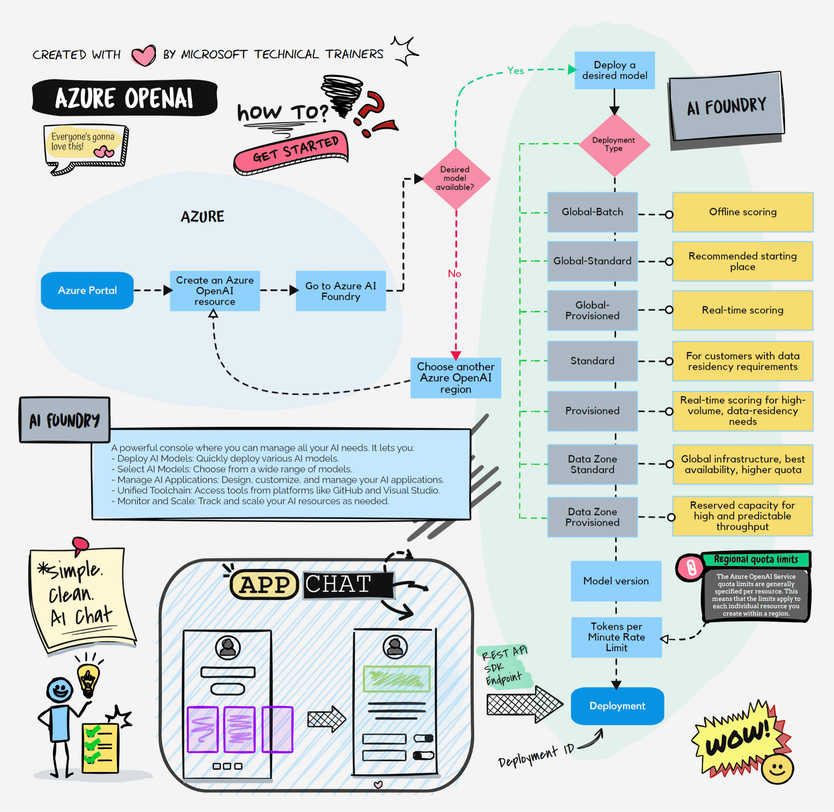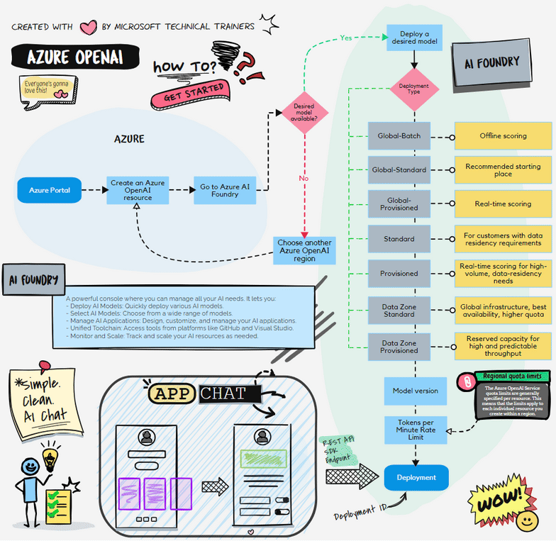 - Deploy: Once deployed, the application calls the Azure OpenAI endpoint using the deployment ID 🔗, using the SDK REST API.