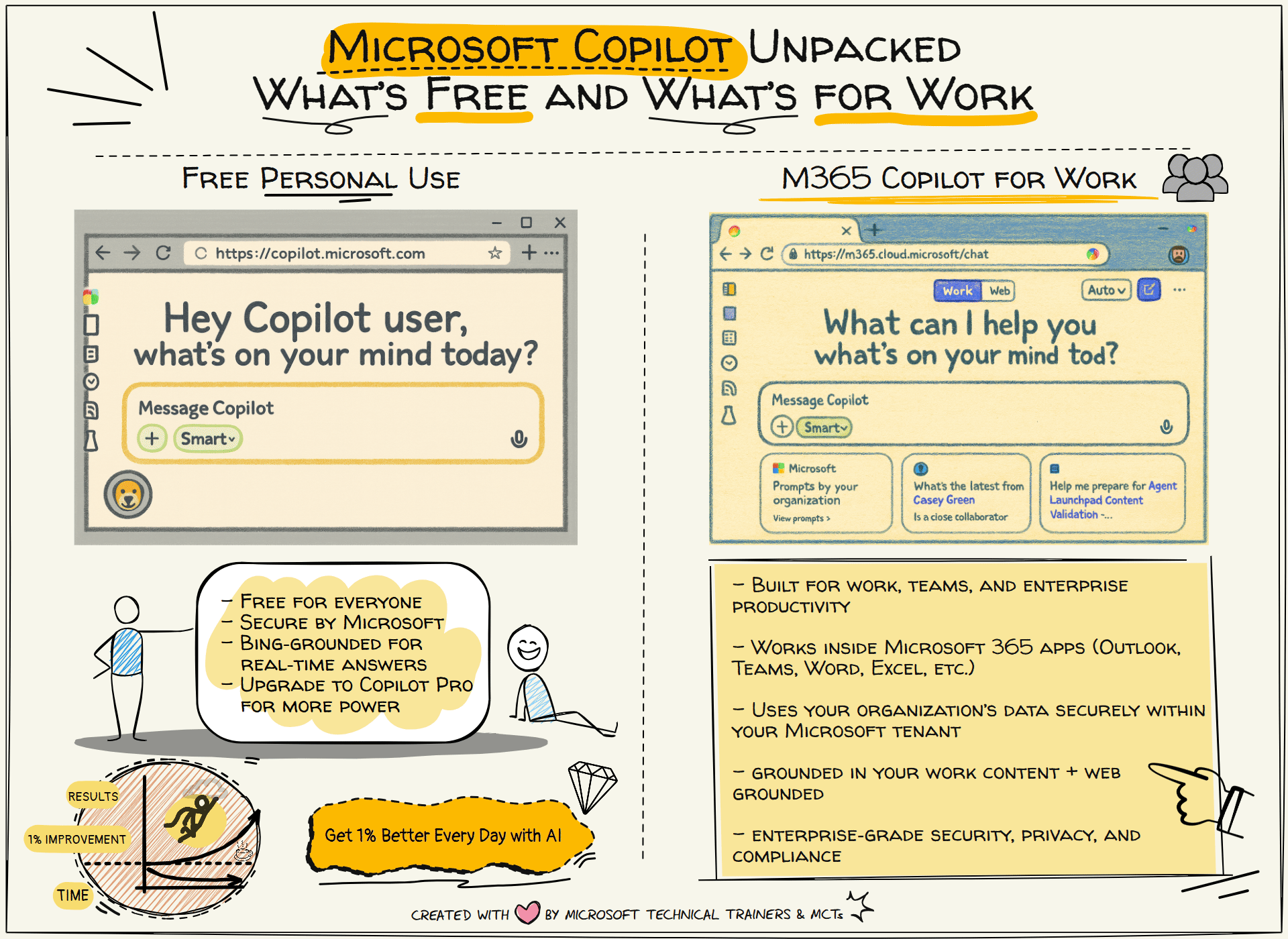 | Feature | Copilot (Free Personal Use) | Microsoft 365 Copilot (Work) |
