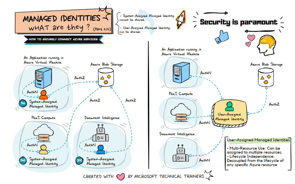 - User-assigned managed identities are flexible and can be reused across different resources.