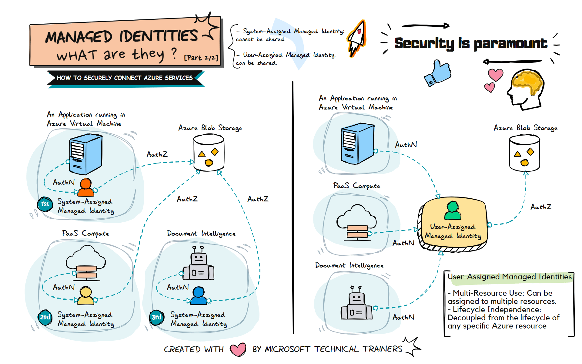 - This identity can be shared among different services, such as VMs, PaaS compute services, and Document Intelligence.